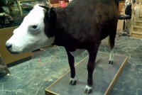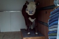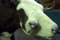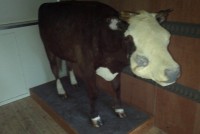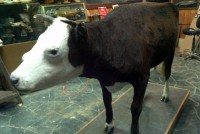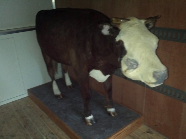 Now featuring the famous sideshow oddities attraction Daisy May, the two headed cow. Daisy graced the midway of some of the most traveled carnivals throught the south and east during her 26 years of life. Part of a traveling sideshow act from south Florida, Daisy was one of over 20 freak animals loved by her owner until her dealth in 1984. She was on exhibit and was the biggest attraction on the midway drawing nearly 88,000 people to view her at a Miami, Dade Youth Fair in 1968. Unusual for deformed animals to live a long life but Daisy was a charmer and well cared for by her owners, who along with the other 20 animals traveled together. I saw Daisy as a calf back in 1965 while attending college in West Virginia. At that time she was working the midway circuit with Thomas Joyland, a southern traveling carnival. Upon her death, her owners decided to keep her memory alive, so off she went to the taxidermist. I found her some 40 years later and she has been restored to museum quality. Rare as rare can get. Comes complete with her original traveling sideshow pen. Own a piece of carnival history, it’s your only chance……….