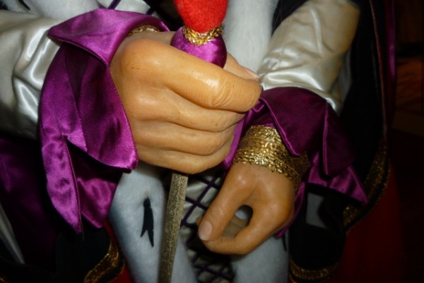 These wax figures are considered the best. The heads and hands are solid wax. Extremely well made, each figure is jointed and comes with it’s own metal stand. Costumes are colorful and bright. Overall the condition is great with the exception of the queen, who is missing one finger. If you collect wax then you should consider this pair for your collection………..