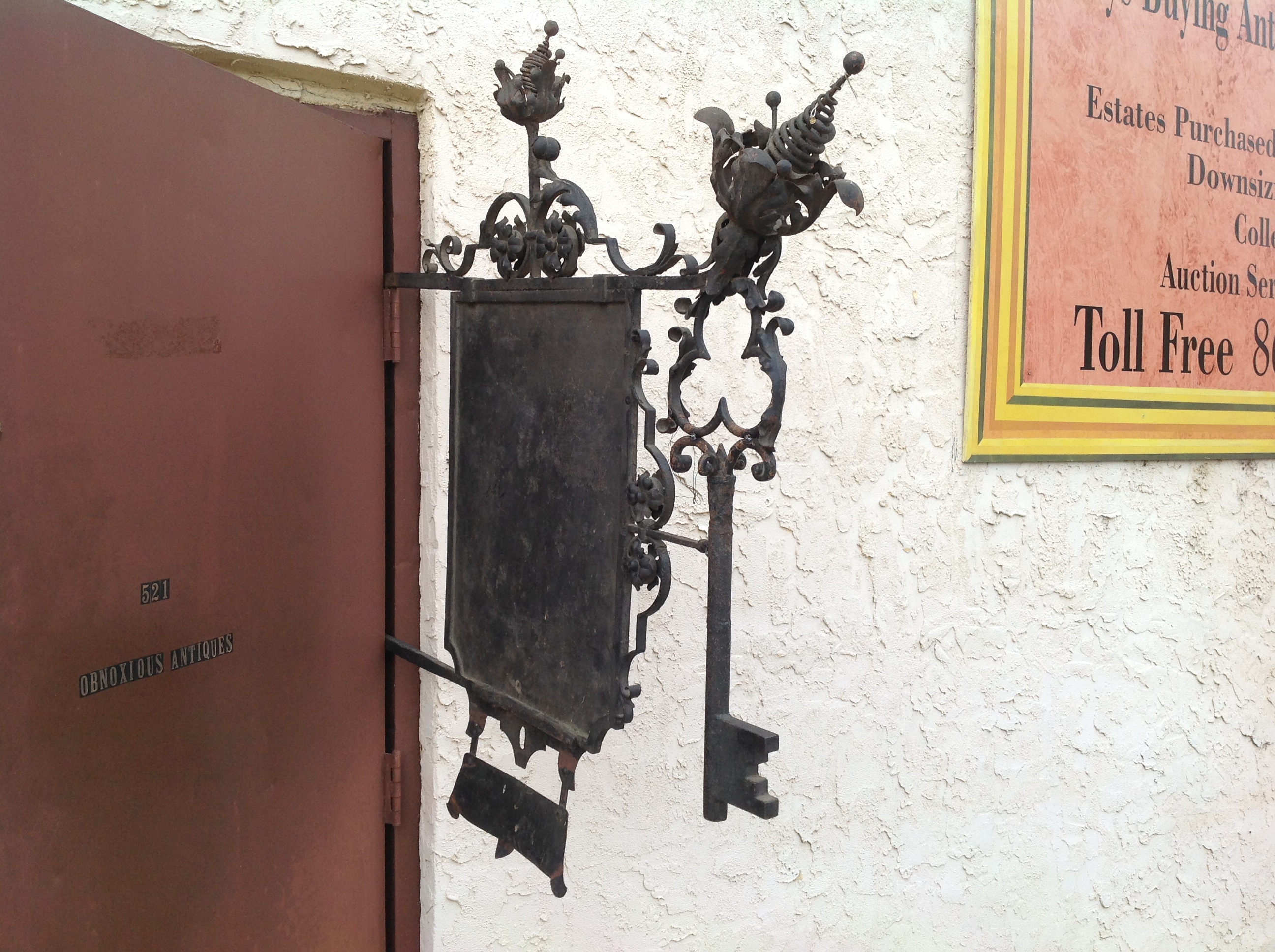 Antique victorian forged cast iron trade sign in as found condition. Heavy forged steel with floral adornments. Just beautiful, what more can we say………