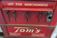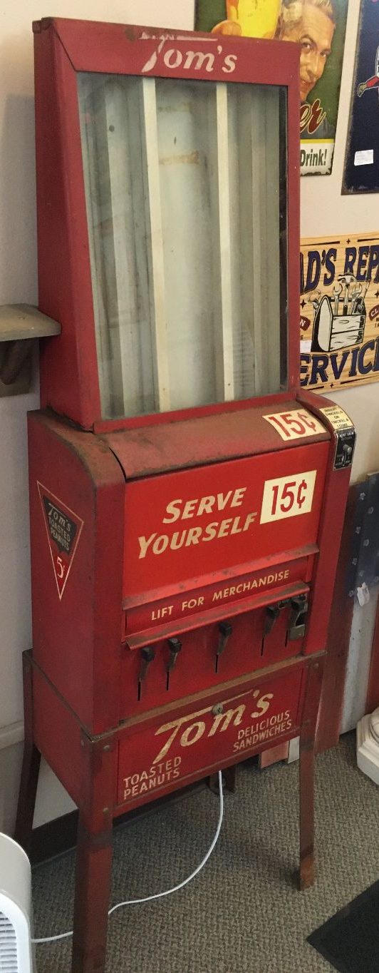 Vintage coin-operated vending machine, Tom’s Peanuts & Sandwiches, 15 Cents,  c.1950’s, great small size, no keys,…