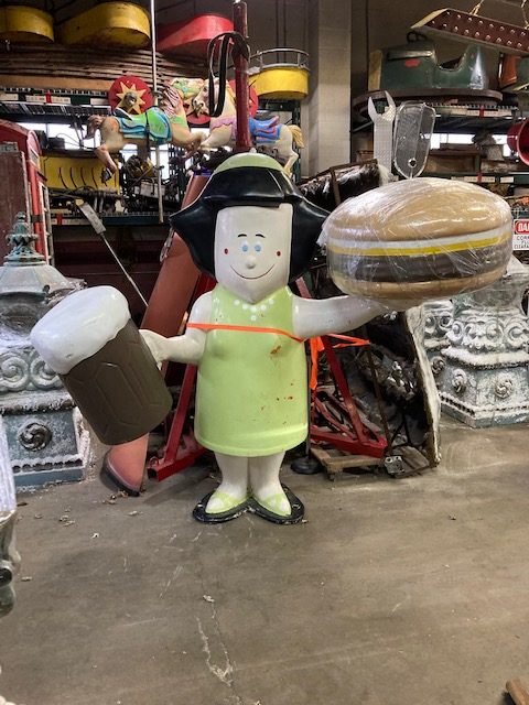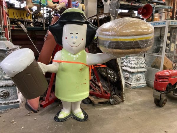 Vintage 1960’s A & W Root Beer Burger Family Mama fiberglass figure in as found condition. Mama needs some minor restoration but otherwise in very nice shape. Rare and hard to find character from days gone by. Nows your chance to own a true piece of Americana………..