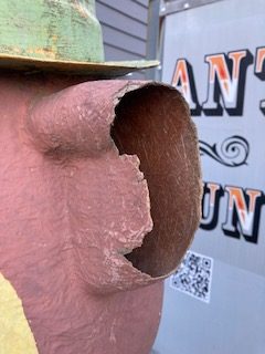 Vintage 1960’s Yogi Bear campground fiberglass figure made by International Fiberglass in as found condition. As you can see from the photo’s, Yogi needs some minor fiberglass restoration and a good paint job to bring back the beauty of thisĀ 7′ character statue. Restoration service is available at an additional charge. When’s the last time you saw one of these come up for sale?