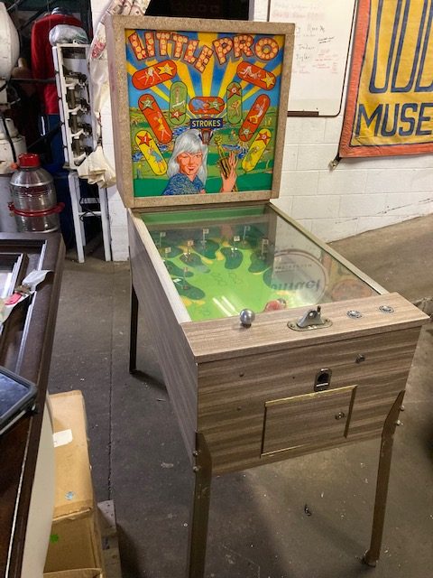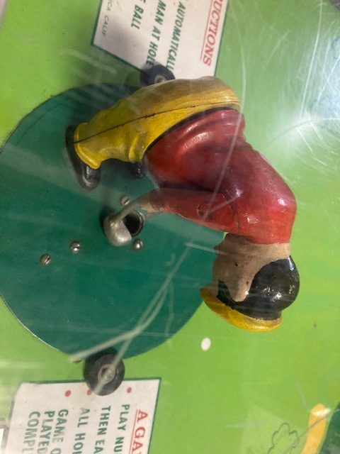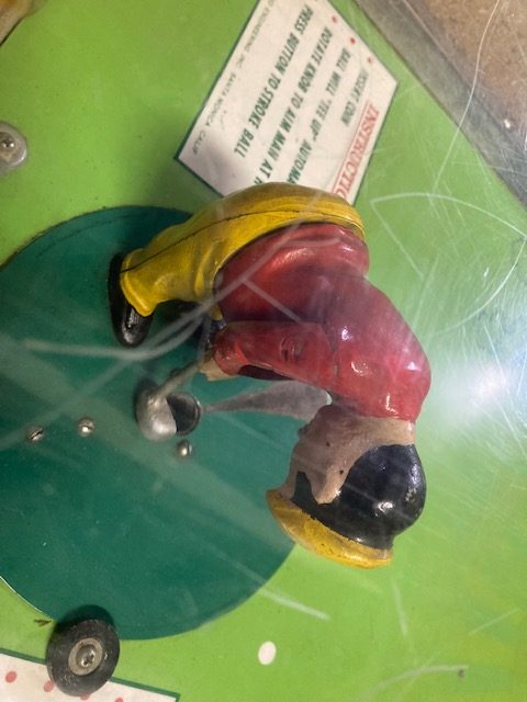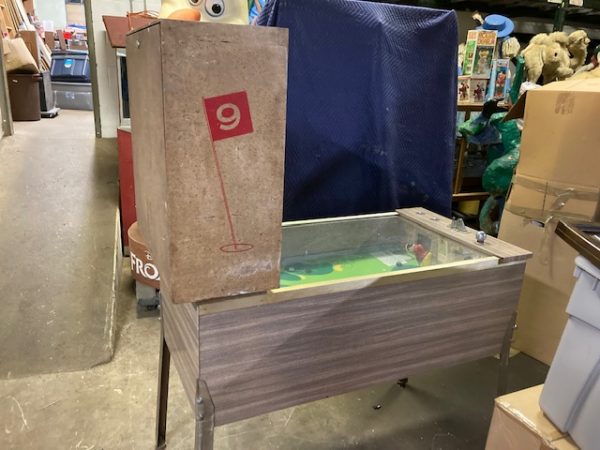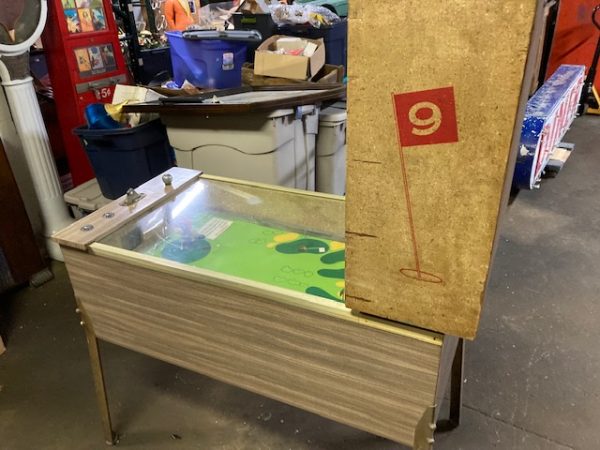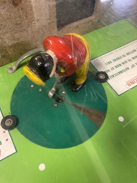 Vintage 1964 Southland penny arcade Little Pro coin operated game in as found working condition. Scores and plays well but the little golfer will need an adjustment to properly direct shot to some holes. Not a hard adjustment to make once the game find its way into your gameroom or mancave space……….