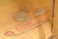 !surfboard  con 1 Vintage 1960’s Con surfboard in as found condition. Will need some fiberglass repair but otherwise in good condition. Measures 9′ tall. Hang 10………..surfboard  con surfboard  con 4 surfboard  con 3 surfboard  con 2