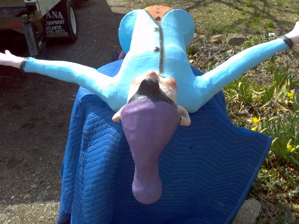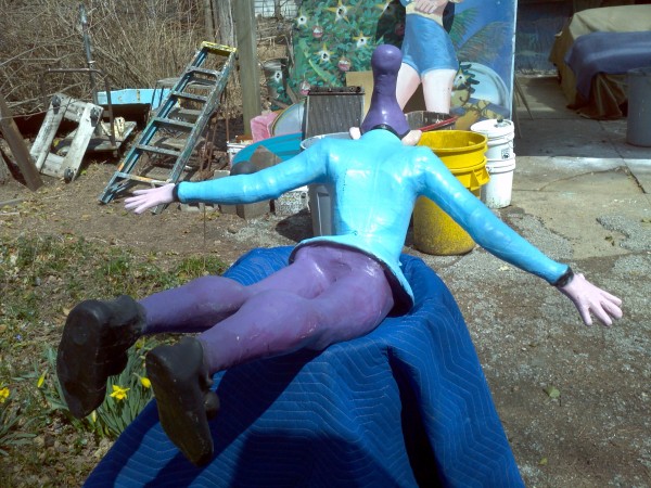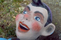 Nice vintage amusement park flying Peter Pan prop. “Pete” is made of composition material and measures at least 6′ long. Heavy and in display condition. May need some minor touch up here and there but a real beauty. Hangs from hooks attached to the body frame………