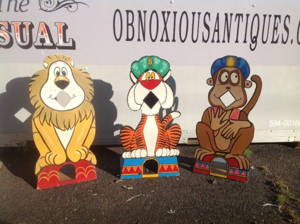 Vintage set of 3 amusement park ball toss games in as found condition. Fresh off the boardwalk at Ocean City Maryland when taken out of service many years ago. Hand painted showing some minor wear. Sold by the set…………