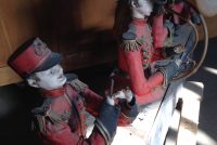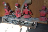 Antique amusement park animated band in as found condition. Last used many years ago at the now closed Magic Forest amusement park, Lake George, New York but originally was part of the Danbury Fair collection of figures made during the 1960’s of silastic. Will need restoration. Just look at the detail of each figure. It needs a talented person like yourself to bring this display back to life………..