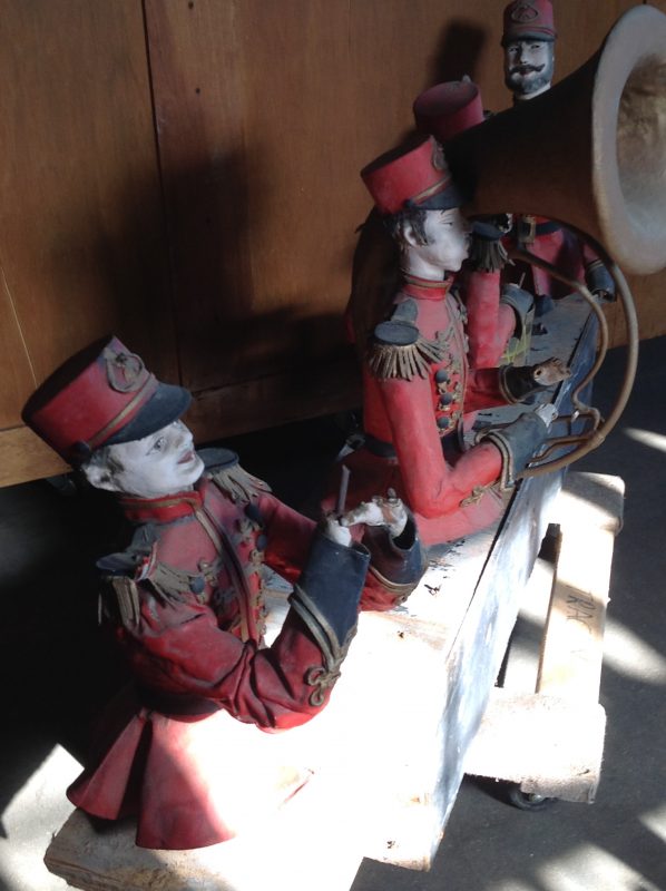 Antique amusement park animated band in as found condition. Last used many years ago at the now closed Magic Forest amusement park, Lake George, New York but originally was part of the Danbury Fair collection of figures made during the 1960’s of silastic. Will need restoration. Just look at the detail of each figure. It needs a talented person like yourself to bring this display back to life………..