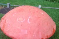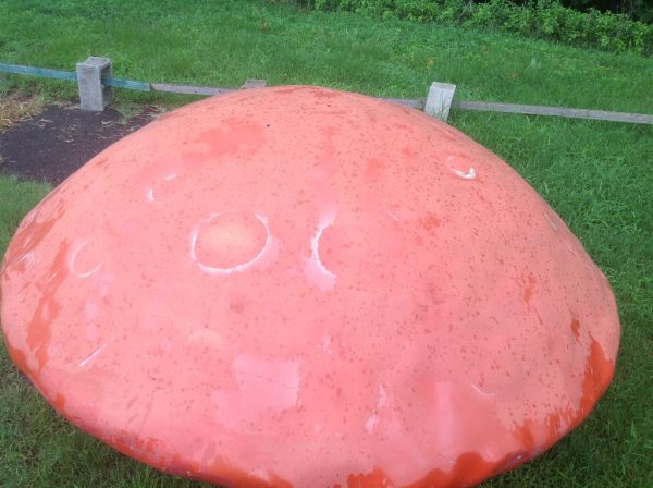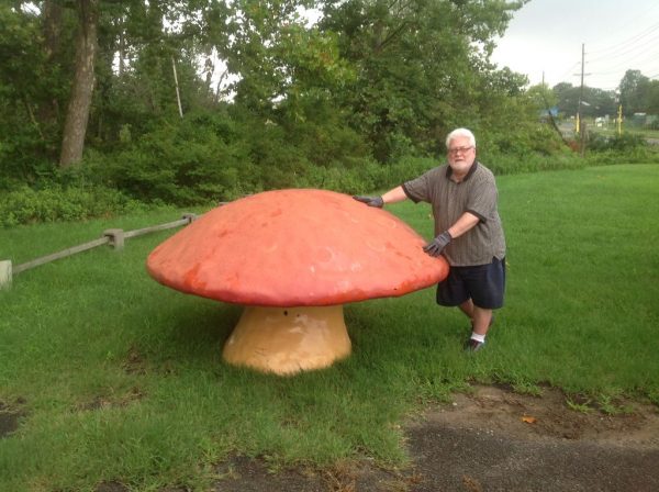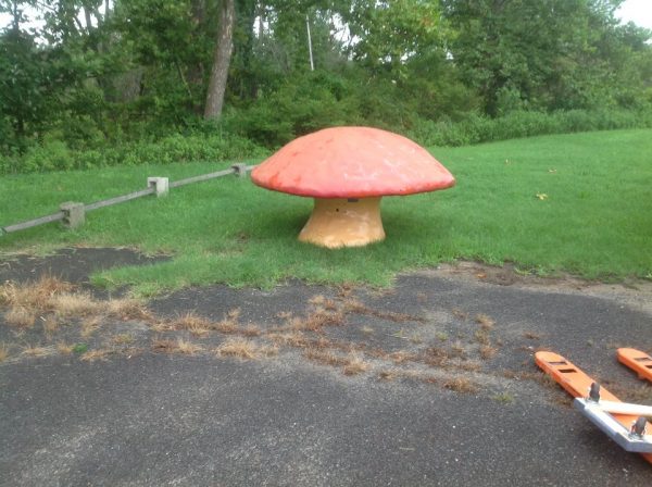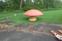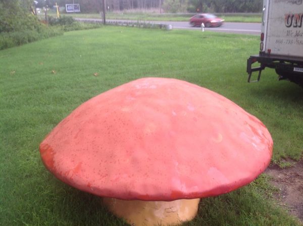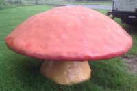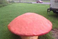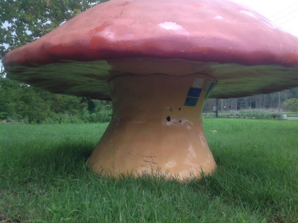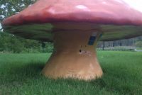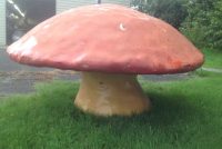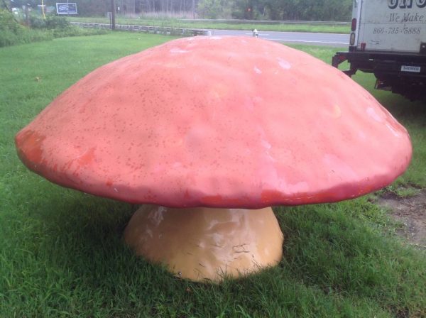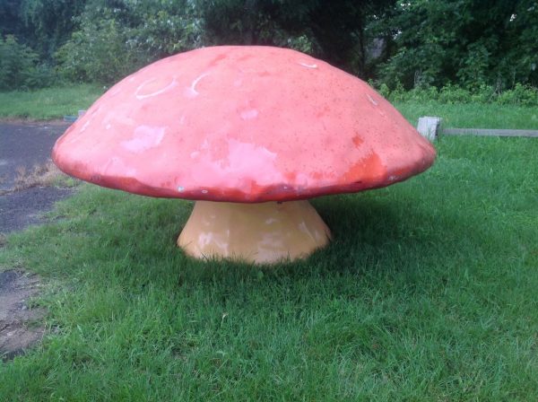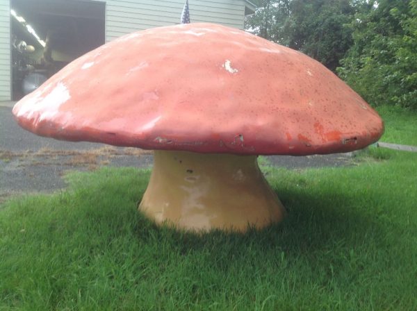 Vintage amusement park carnival ride fiberglass mushroom in as found condition measuring 7’4″ x 52″. Mushroom will need some minor restoration but overall in very nice shape for the age…………
