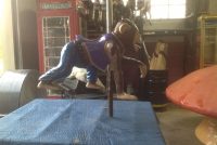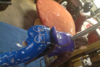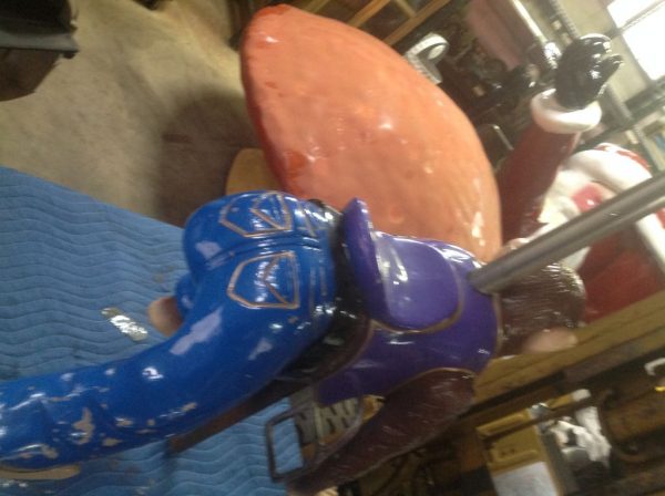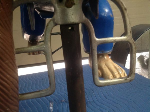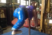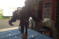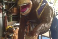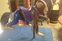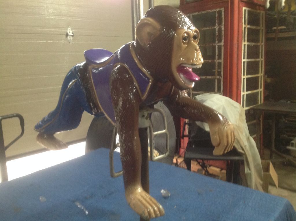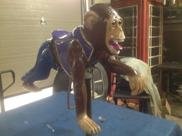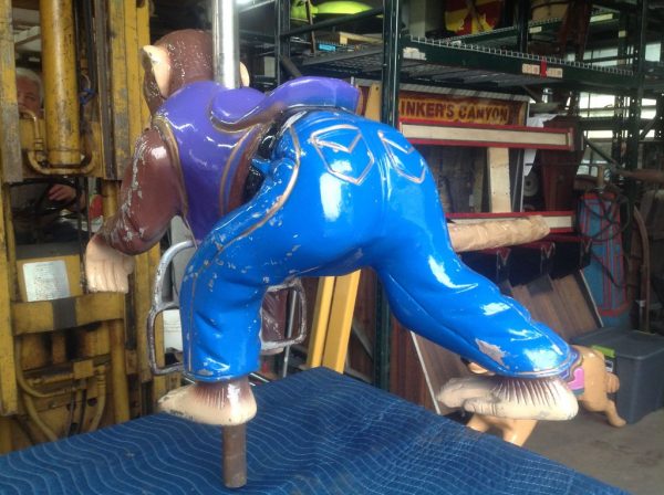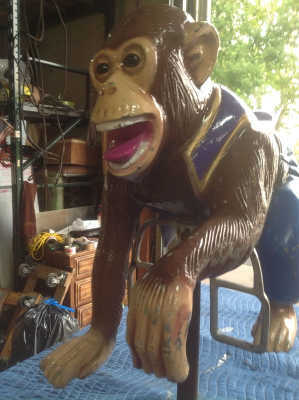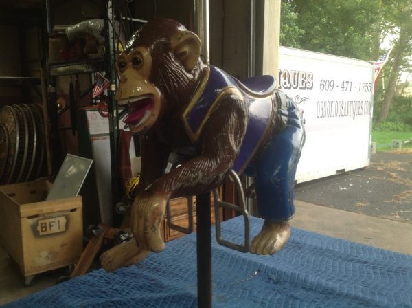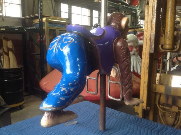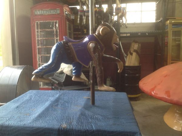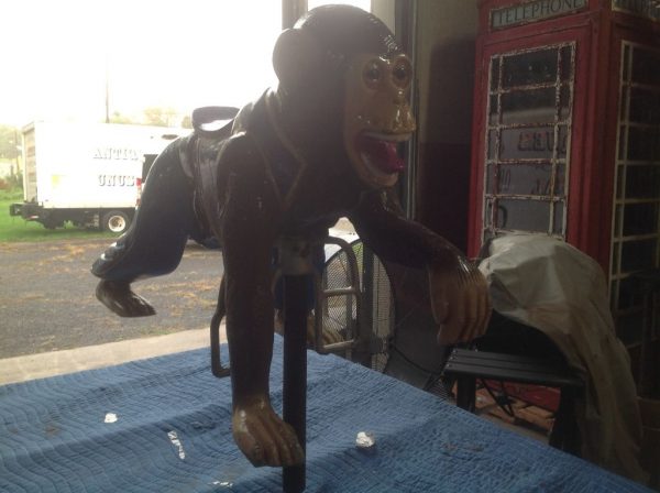 Vintage cast aluminum amusement park carousel monkey in as found condition. Comes complete with pole and stirrups. Nice bright colors……….