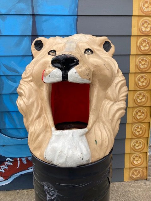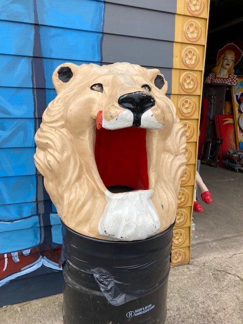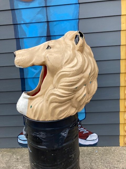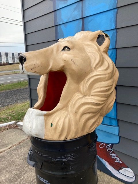Vintage Amusement Park Fiberglass Lion Head Trash Can Topper