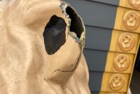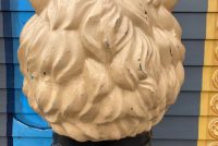 Vintage fiberglass Lion trash can lid in as found condition. Nice overall shape with the exception of the right ear that will need to be repaired. Environmentally safe for human use…………