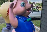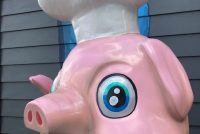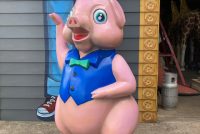 Great vintage 1960’s amusement park fiberglass Chef Pig figure in restored condition. Â Piggy is old style fiberglass construction measuring 8′ tall x 2′ wide x 3′ deep. Quality fiberglass is getting harder to find……….
