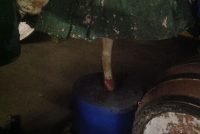Guy on barrel 9′ tall x 5′ deep counting bracket