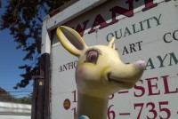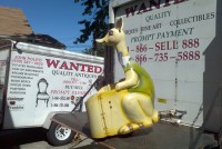 Neat “Ride A Roo” vintage amusement park fiberglass Kangaroo buckets. Will need some cosmetic touch up but otherwise in good as found condition. Use as a planter or make into a seat to use around a bar………….