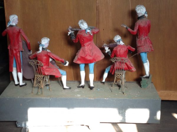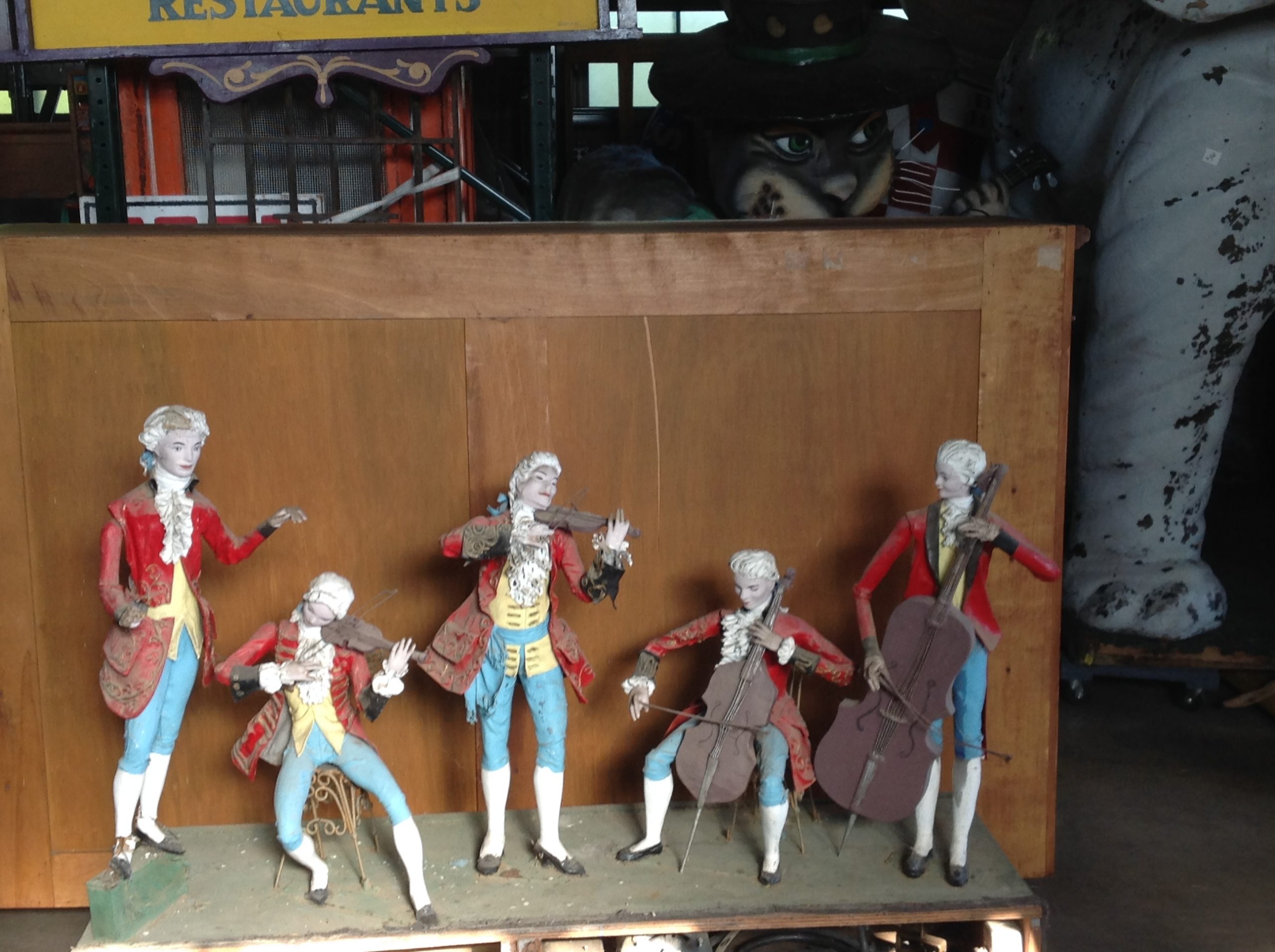 Vintage amusement park Orchestra animated display in as found condition. A true Danbury Fair collectible that finished its carrier at Magic Forest, Lake George, NY. Used over the years but showing a need for total restoration. Wonderful detailing. Made of Silastic, as were most of the figures from Danbury Fair. Don’t miss this one………..