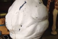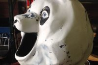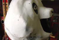 Vintage amusement park Panda Bear trash can topper in as found condition. Nice overall shape but will need some minor restoration but will look good for displaying as he sits……………