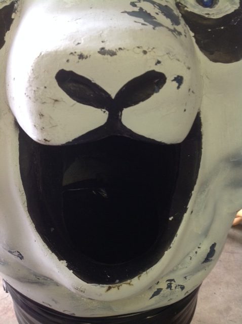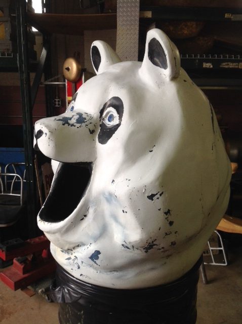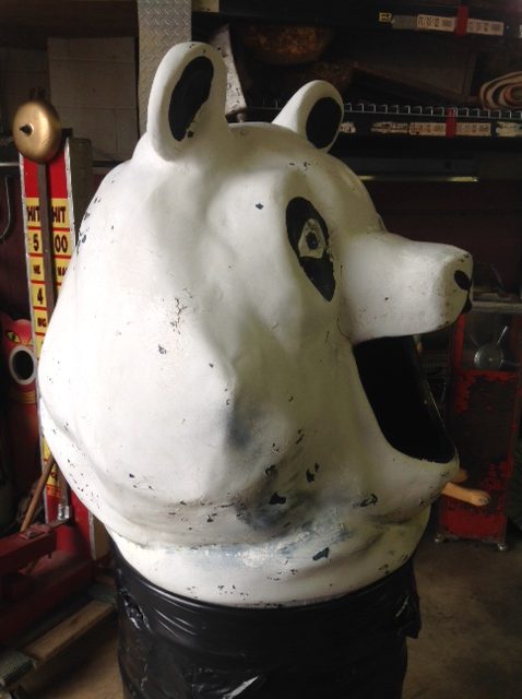 Vintage amusement park Panda Bear trash can topper in as found condition. Nice overall shape but will need some minor restoration but will look good for displaying as he sits……………