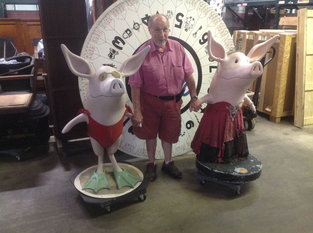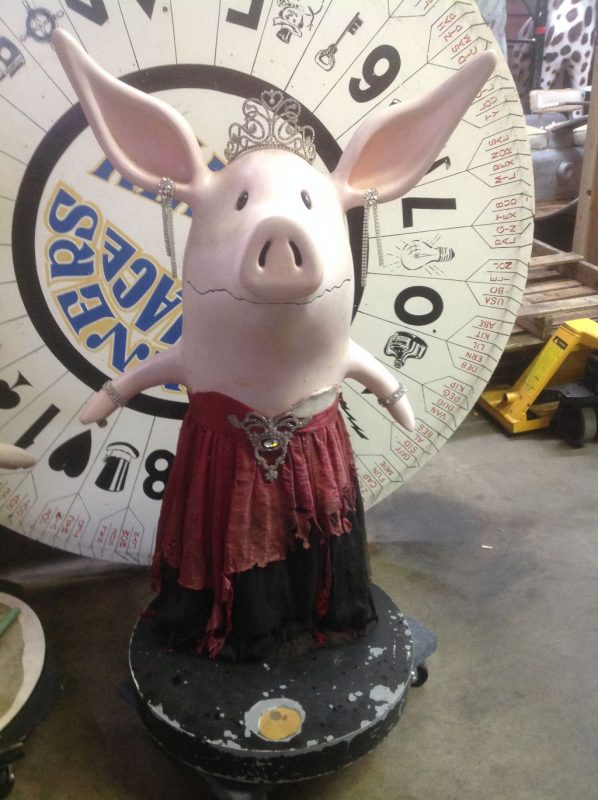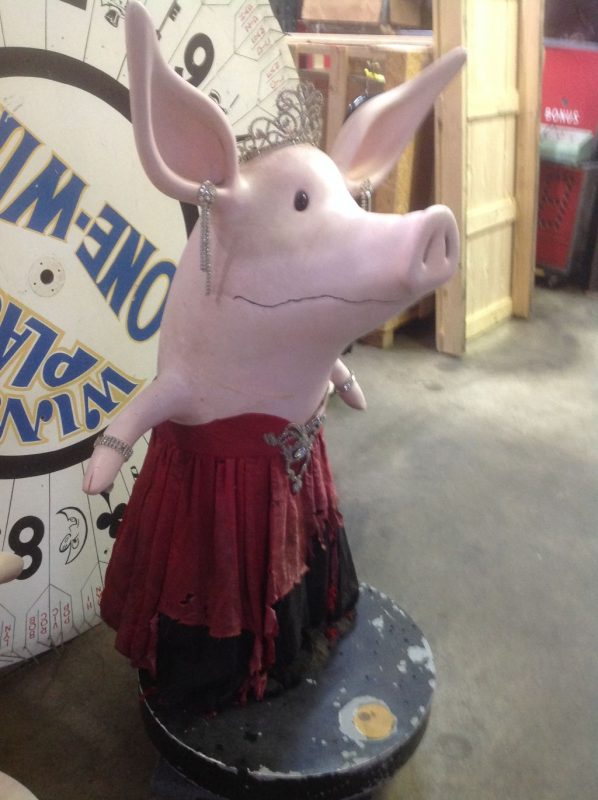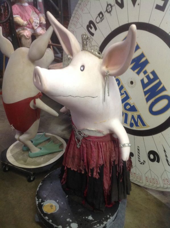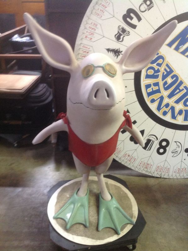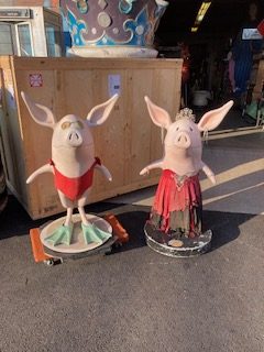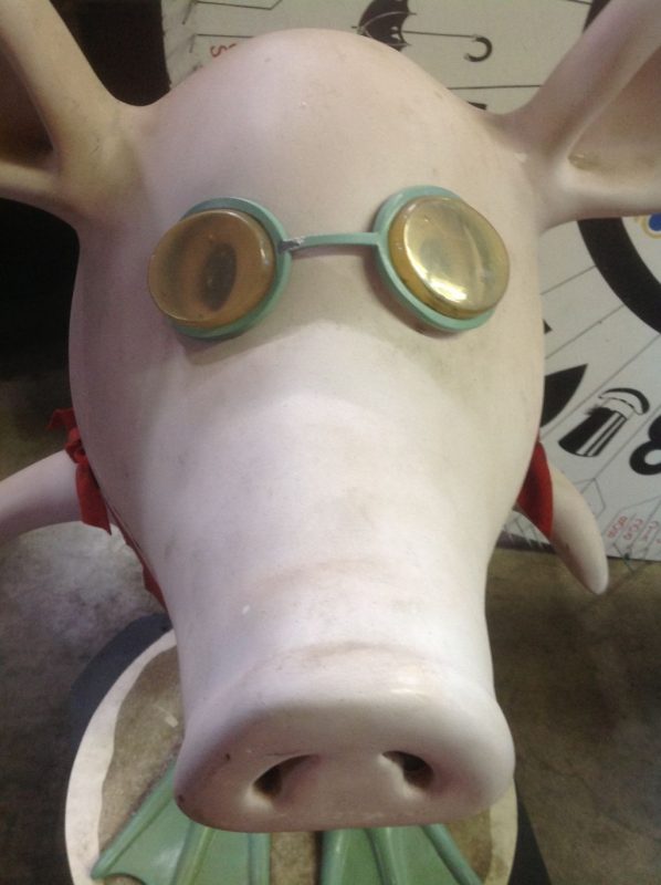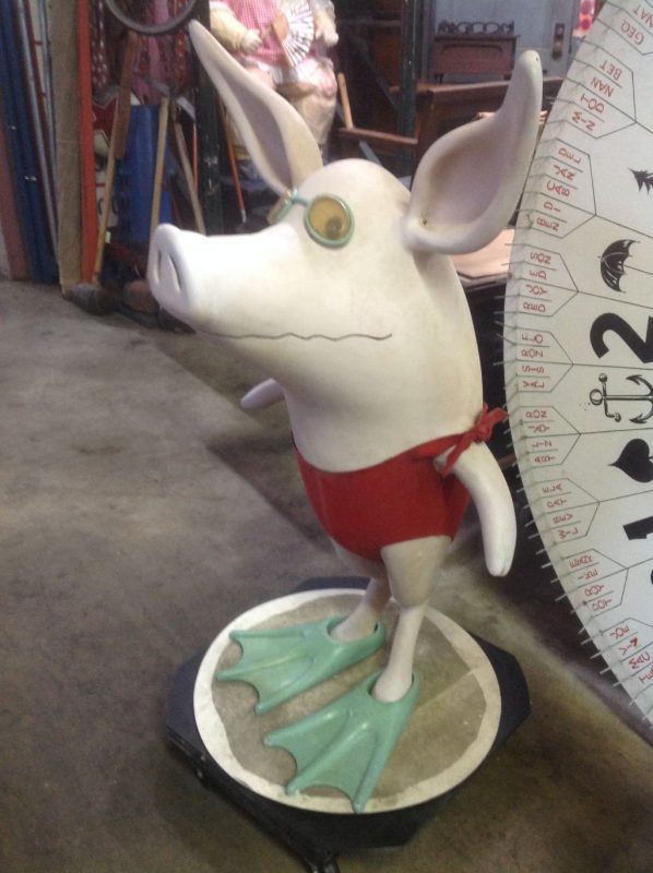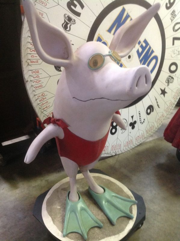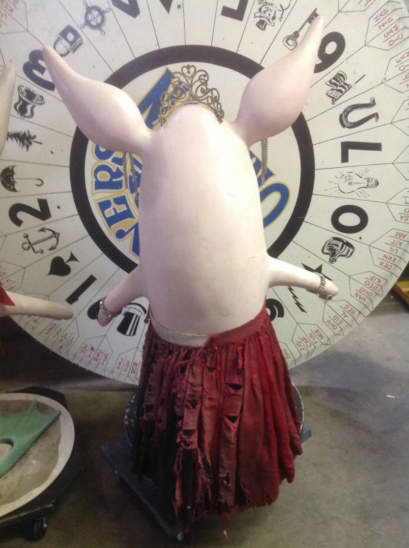 Fantastic vintage amusement park fiberglass Olivia The Pig statues in as found condition. Olivia is the famous pig written about by writer Ian Falconer in his children’s books. Pigs are as found needing cleaning but otherwise just a great addition to any child’s bedroom or play area. Sold as a set only………..