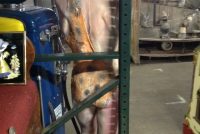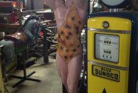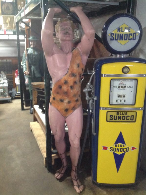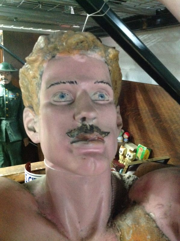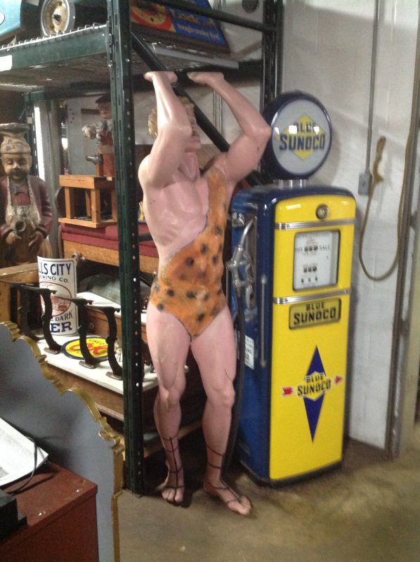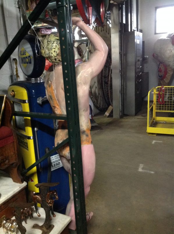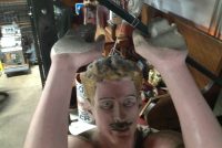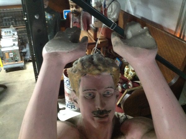 Vintage amusement park fiberglass Strong Man statue in as found condition. Heavy construction for years of indoor or outdoor use. Let him life your spirits…………..