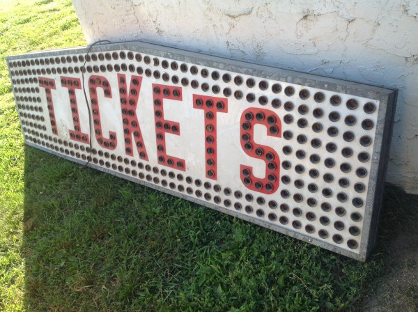 1960’s styling amusement park galvanized can ticket sign in as found condition. Works but will need bulbs and some minor socket restoration. One box of marquee bulbs will be included but more will be needed to complete the sign.