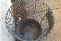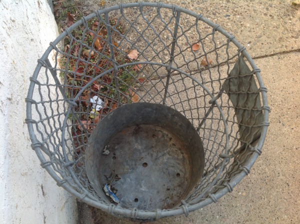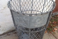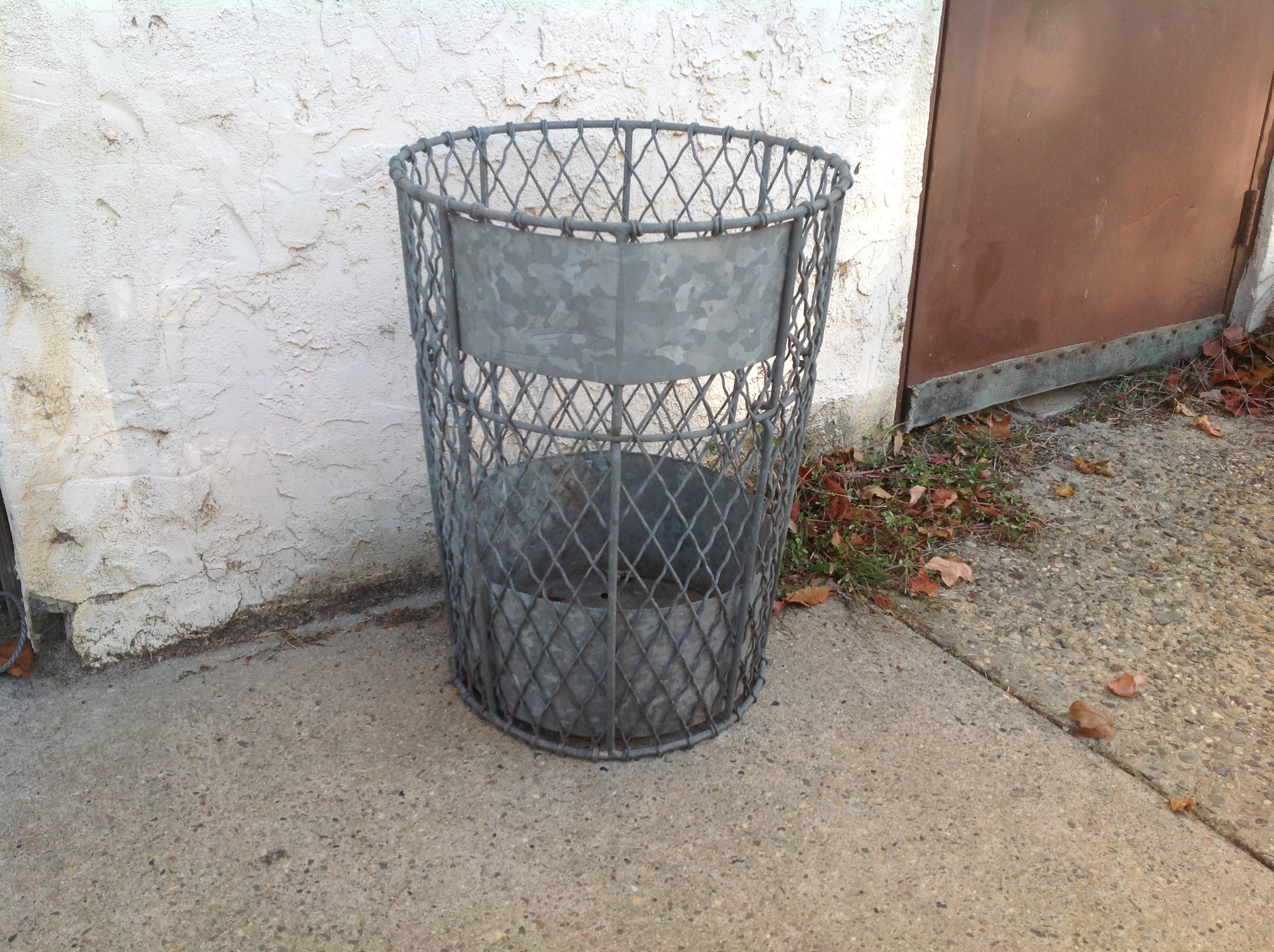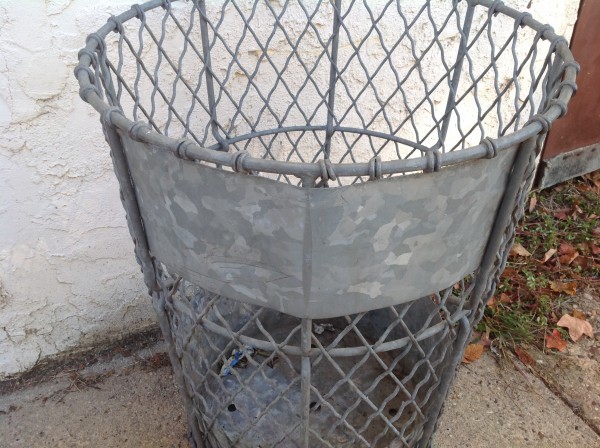 Vintage galvanized metal amusement park trash can in as found condition. Heavy and ready to take on some “trash”………….