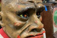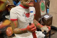 Vintage animated amusement park haunted dark ride Killer figure in as found condition. Killer goes by the name “Stabber” and was used to scare customers as they walked through the haunted display. Paper mache and plaster construction with arm movement. Neat old piece with character. Believed to be from Paragon Park that closed in 1985………..