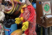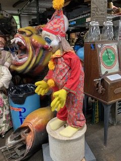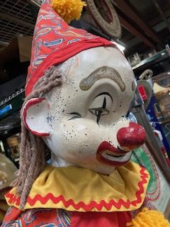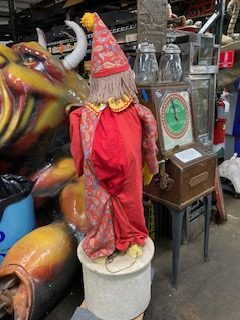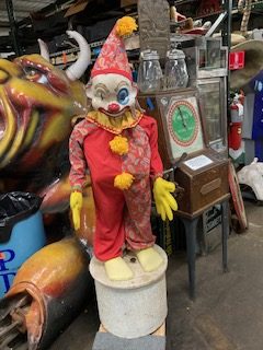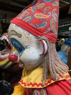 Vintage animated circus clown store display automaton in as found working condition.Just in . Clown bends at waist and moves side to side. He has such an adorable face………