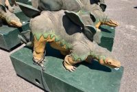 13 vintage animated Dinosaur displays in working condition. All pieces have independent movements with timers. Will need some cosmetic reconditioning on bases but otherwise in great shape. Manufactured by the famous Lou Nasti studio, New York. Hard to find a grouping like this anywhere, so here’s your opportunity to own a large collection of authentic looking Dinosaurs.. Sold as a collection only. Video available upon request. Need more information, please call, text or email………….
