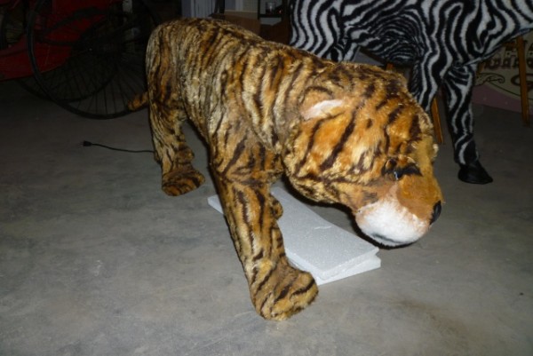 Tiger animated store display purchased from an old New England toy store. He moves his head side to side and measures 48″ long x 24″ tall. Nice condition for displaying…………….