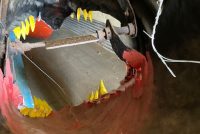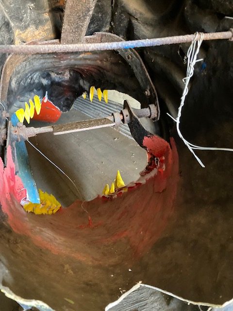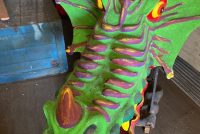 Vintage Wildwood New Jersey boardwalk animated dark ride fiberglass Dinosaur head in as found condition. Dinosaur measures 5′ long x 4′ wide x 51/2′ tall missing its motor to animate the jaw. Nicely made and well constructed…………