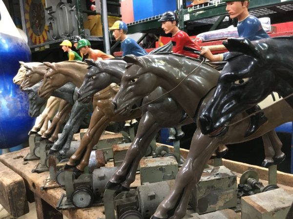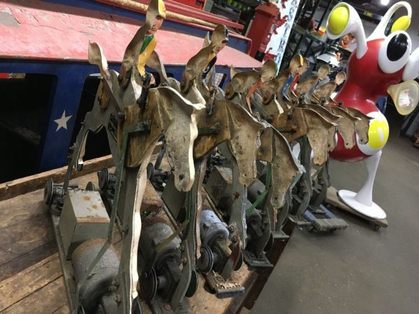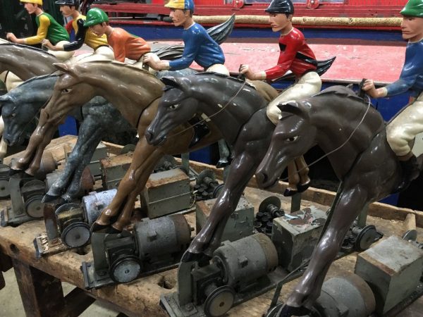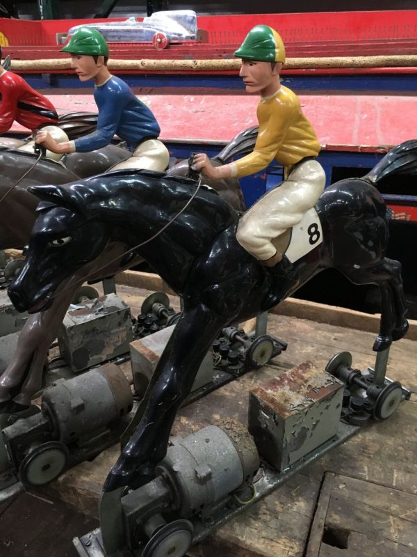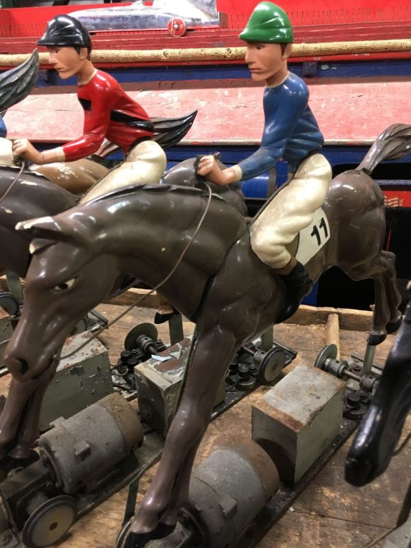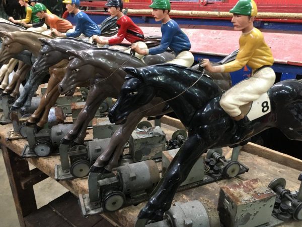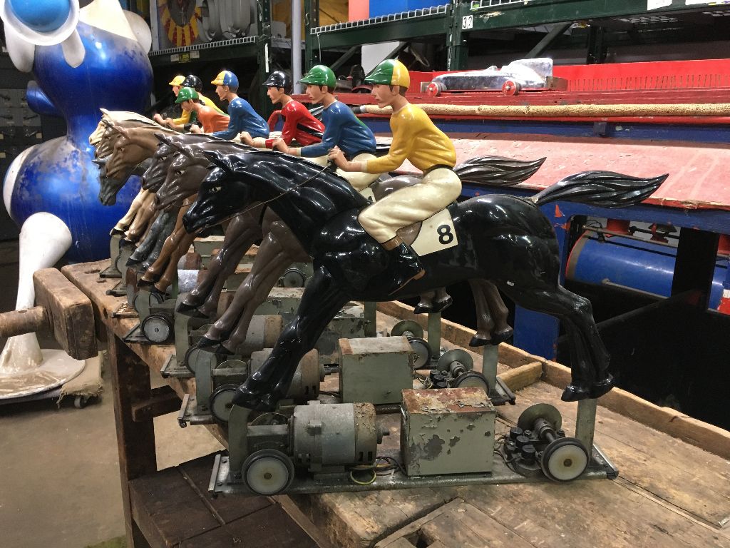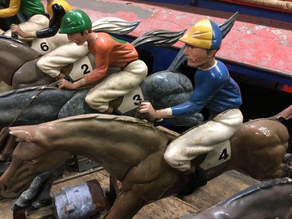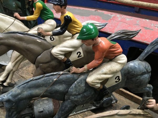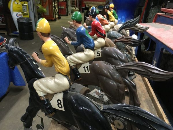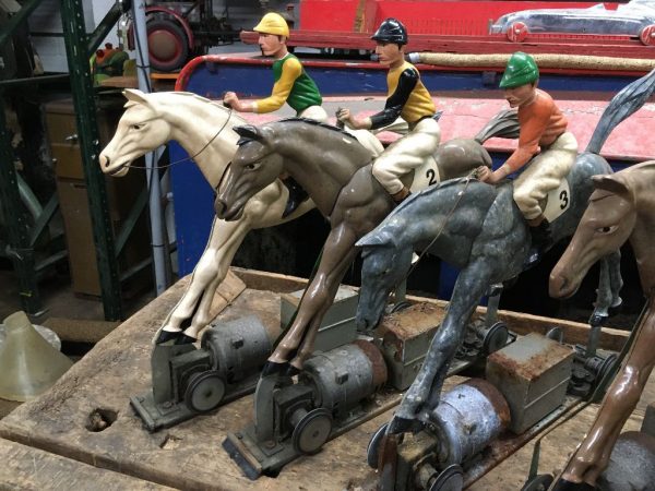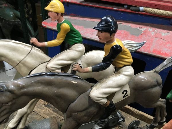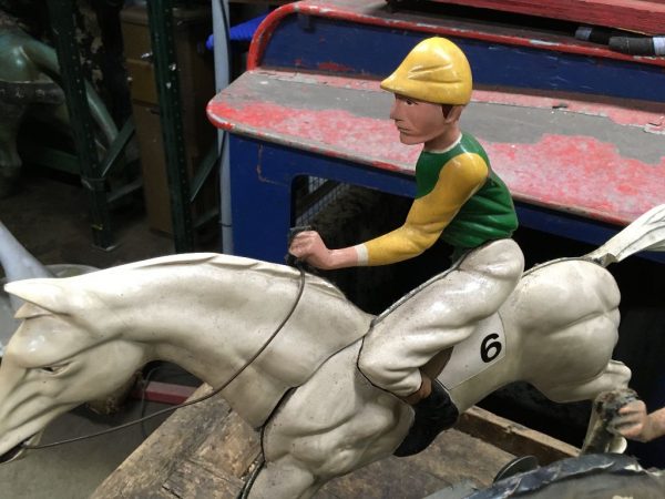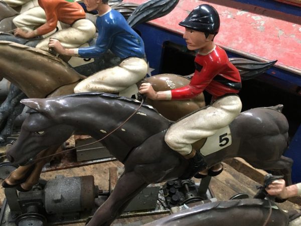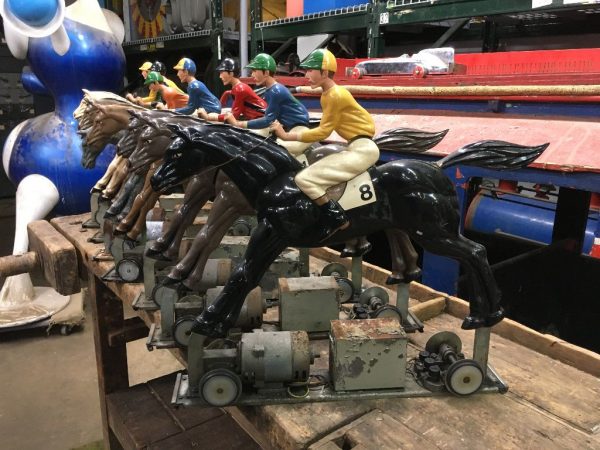 Vintage Astroland Coney Island Kentucky Derby race horses in as found condition. Horses were removed from game and in storage for over 20 years. Last picture shows the game as it appeared at Astroland back in the 1970’s. Limited supply of 7 so buy early……………