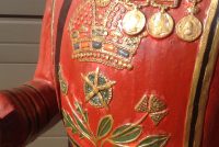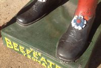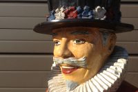 Vintage fibereglass Beefeater Gin Yeoman advertising statue in as found condition. Shows some minor wear but otherwise a very nice example of this advertising piece. Mr. Yeoman measures about 6′ tall and comes in two sections. Each section signed by artist. Wonderful vintage collectible that should be in your collection. “Wild Bill” not included……………..