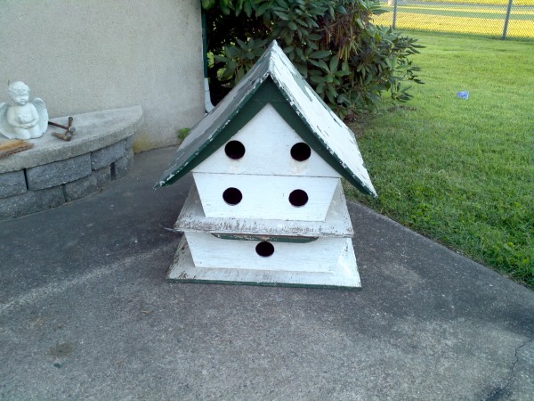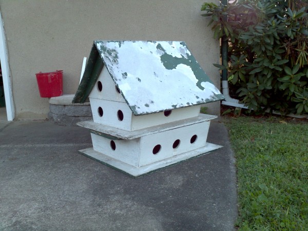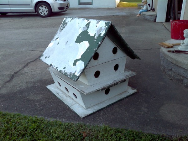 Vintage old 18 room birdhouse in as found condition. Taken down and stored away for years. All that’s left is some minor bird droppings as the previous owner cleaned it before storing it away. Nice old house with great patina……….
