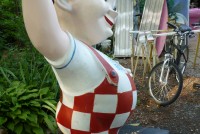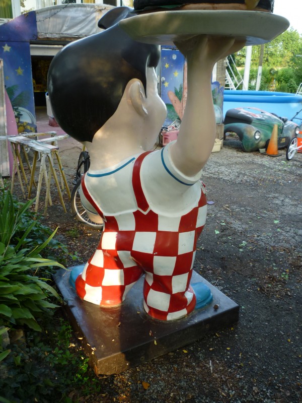 Vintage 1960’s Bob’s Big Boy fiberglass advertising statue in as found condition. Last used in a Bob’s Big Boy restaurant in southern New Jersey. This fellow towers about 8′ tall with hamburger. Nice shape for its age. In all these years he never went on a diet……….