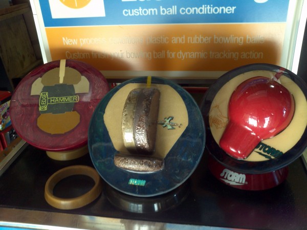 Three vintage and unusual bowling ball cut-away display models from a now closed bowlng alley. You don’t see many of these…………