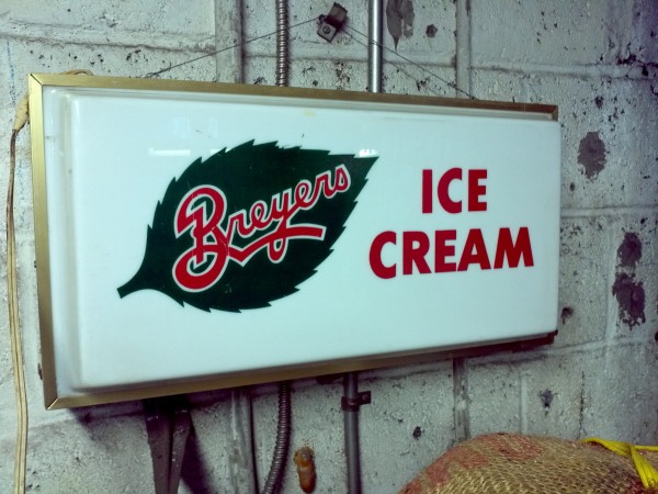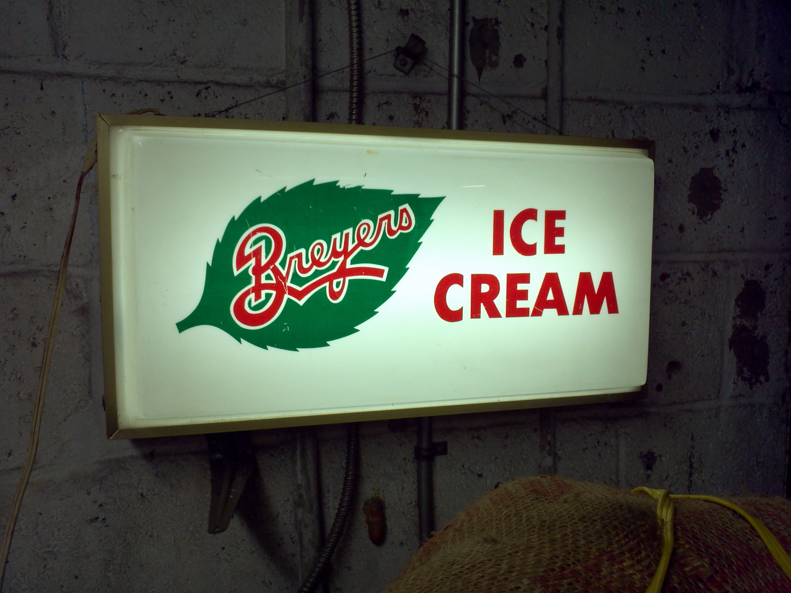 Vintage back lite Breyers ice cream advertising sign measuring 24 1/2″ x 12″ x 4 1/2″.