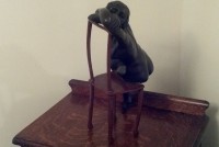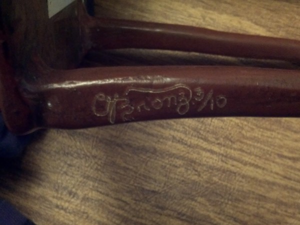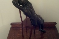 Woman on Chair Bronze statue Signed. The signature looks to be “C J Bronz 3/10 “. Well sculpted… 15” tall…. We do not know a lot about this vintage piece of art except it came out of a large estate in the Philadelphia Area. There is a piece of paper attached to the bottom which reads “Chair Lady” Dario Morales from Columbia, died in Paris 1980. original in Moma NY only three reproductions permitted. Purchased in Panama March 2002.”