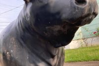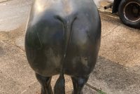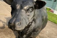 Vintage Butch Shop larger than life advertising fiberglass bull in as found condition. Purchased from the original owner who had it nicely displayed in a flower bed outside the back porch. Overall in fantastic shape since the bulls life has been outside for over 50 years. Great color and detailing……