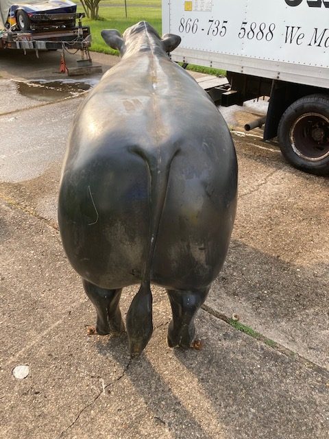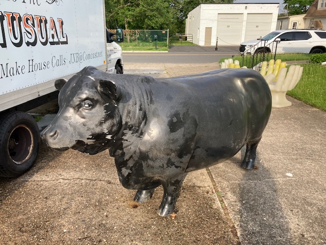 Vintage Butch Shop larger than life advertising fiberglass bull in as found condition. Purchased from the original owner who had it nicely displayed in a flower bed outside the back porch. Overall in fantastic shape since the bulls life has been outside for over 50 years. Great color and detailing……