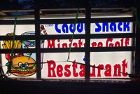Vintage double sided Caddy Shack miniature golf sign in as found condition. New old stock, never used, still in shipping crate. Vacuum formed fronts with bright colors. Needs a new home, please. Measures 8′ long x 4′ high. Can you help?……………….