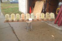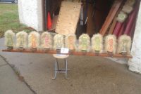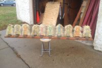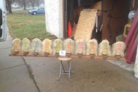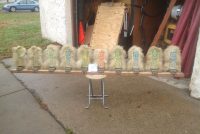 Vintage carnival / amusement park knock down cats on board in as found condition. Each board contains 10 cats. 5 available. Sold by the piece. Comes complete with one red vinyl leaning board. Get them while you can………….