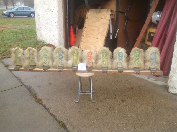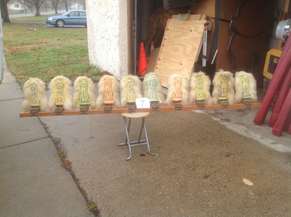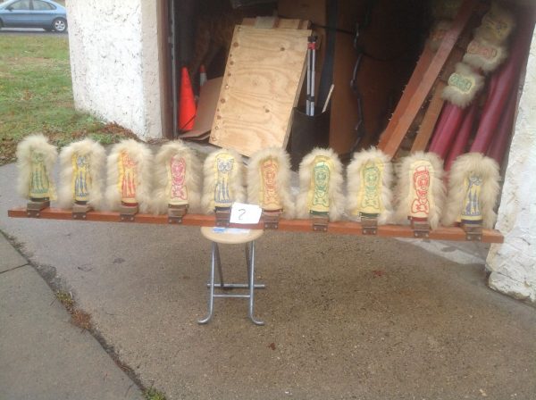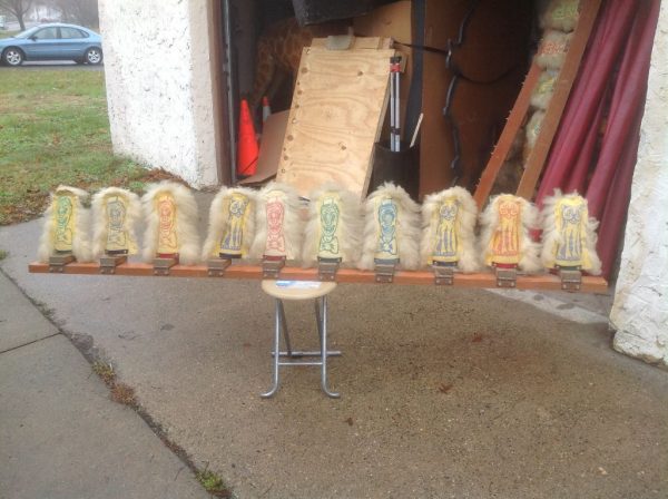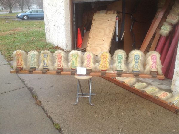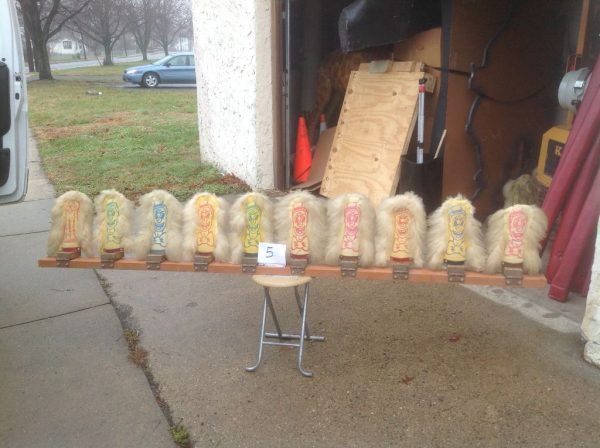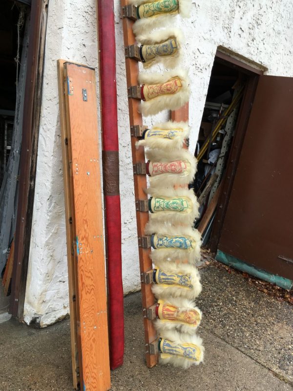 Vintage carnival / amusement park knock down cats on board in as found condition. Each board contains 10 cats. 5 available. Sold by the piece. Comes complete with one red vinyl leaning board. Get them while you can………….
