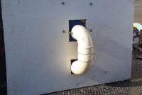 Pair of vintage carnival made ball toss game in as found condition. Plush fronts with PVC pipe. Nice wall art. Measures about 4′ x 4’……….