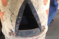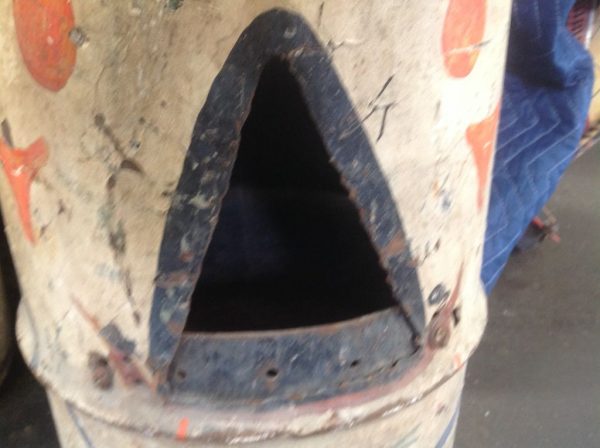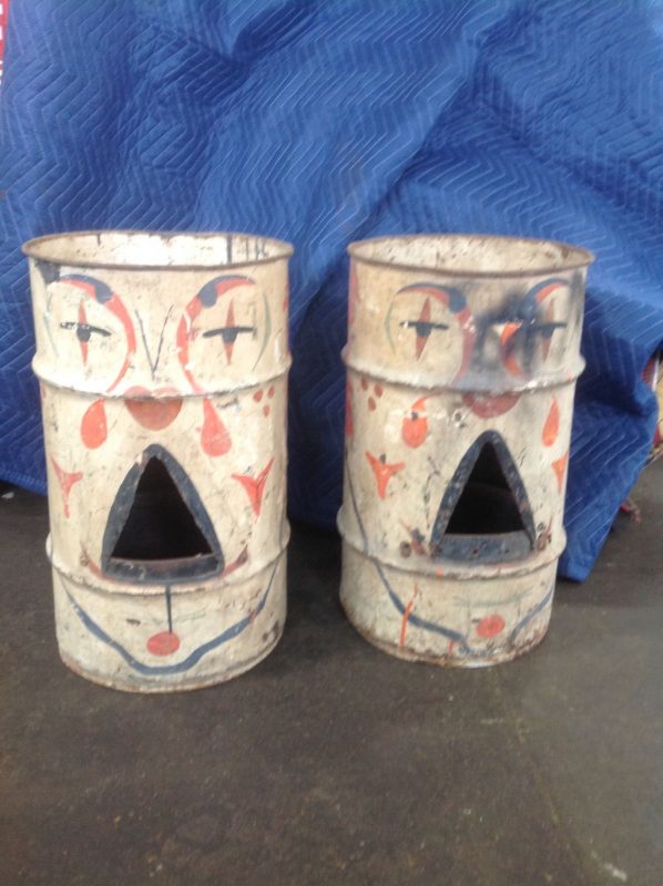Early carnival ball toss can game in as found condition. Interesting midway game with good graphics. Found tucked away at a carnival salvage yard in South Florida.