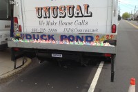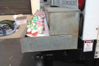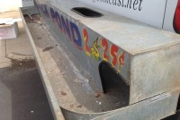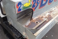 Nice old vintage carnival midway duck pond with ducks, in as found condition. Comes complete with weighted ducks and babies and piped for water use. Made from galvanized steel, measuring 95″L x 18″W x 12″H. Just a great piece to add to you collection with good graphics………..