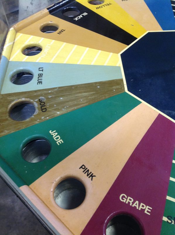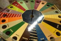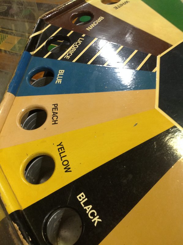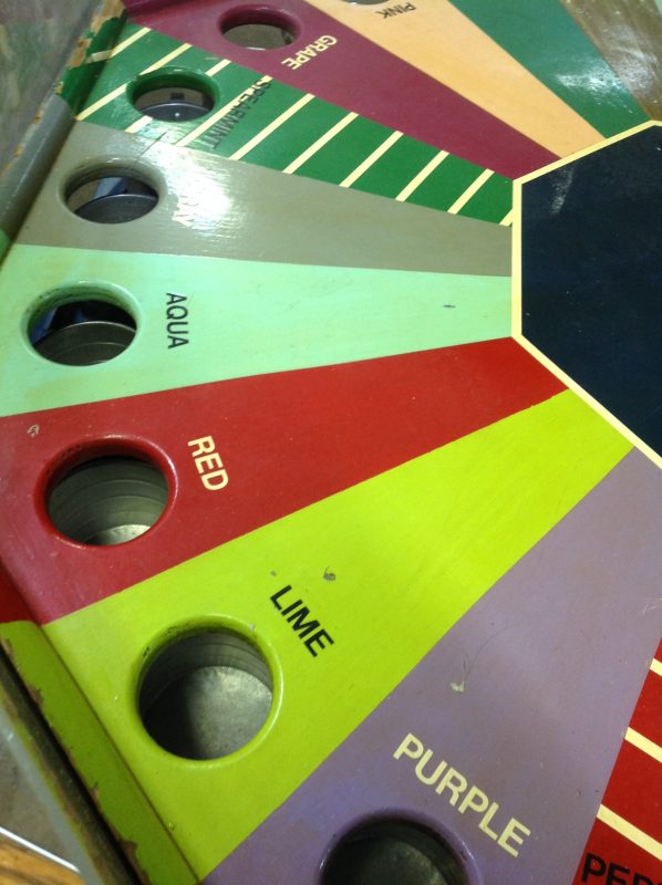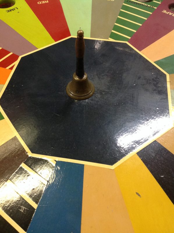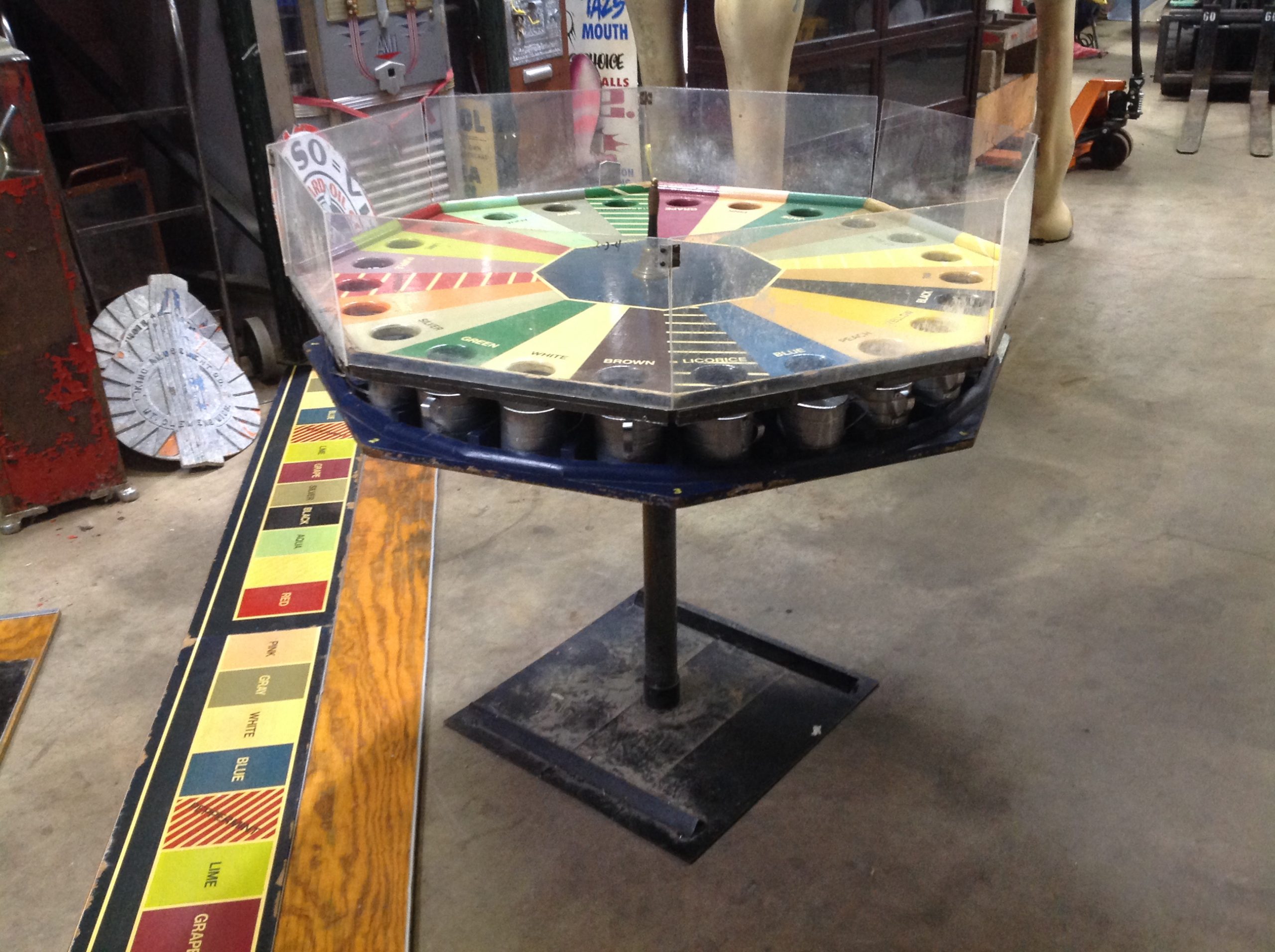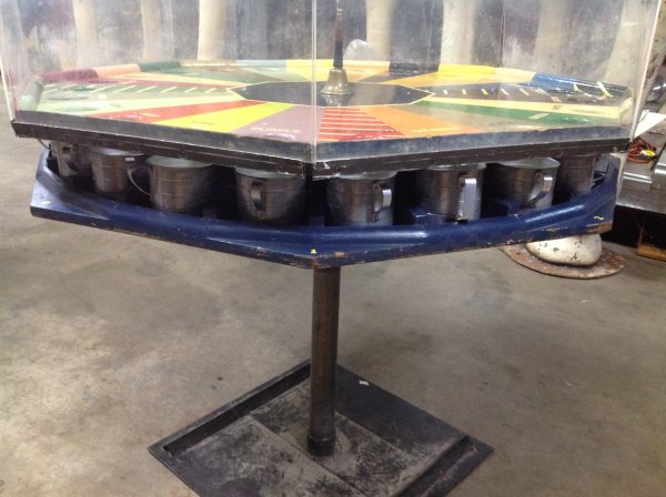 Vintage carnival midway gambling rat wheel in as found condition. Comes complete with wheel, stand, laydowns and metal cups. A carnival favorite among carnival goers where the patron bets on the color the rat will be attracted to after the wheel spins. Everything you need to play the game……