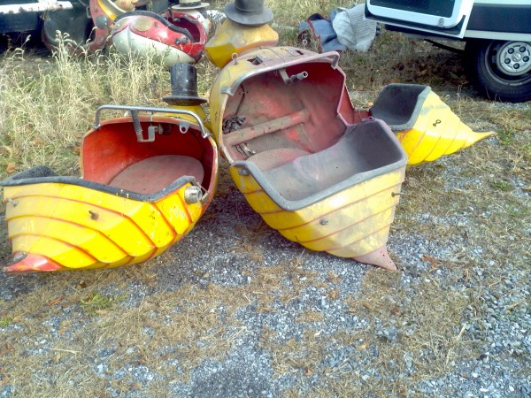 Take a look at these, nice old vintage fiberglass carnival bee rides in as found condition. Will need cleaning and some minor restoration but also look good as they are, it’s up to you. Would look good in a childs room , garden or just sitting on the front lawn to draw attention Buy one or all three……………