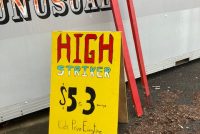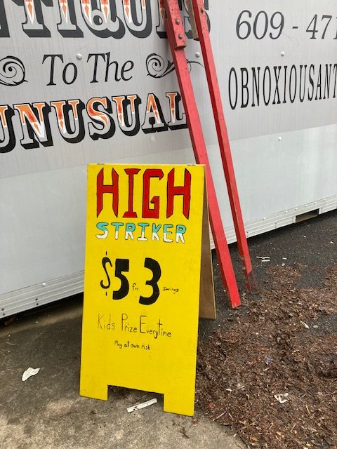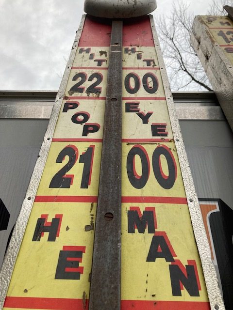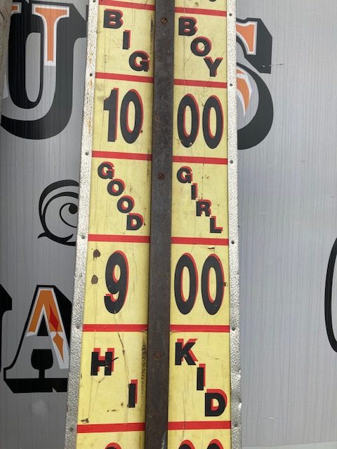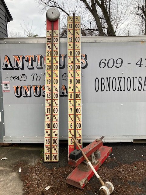 Original vintage carnival strong man high striker in as found condition. Complete with mallet and bell. Show your strength off to family and friends………..