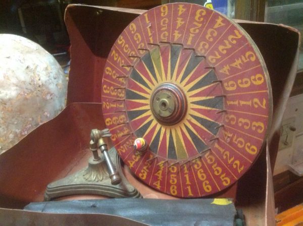 Vintage Carnival Wheel With Cast Iron Stand